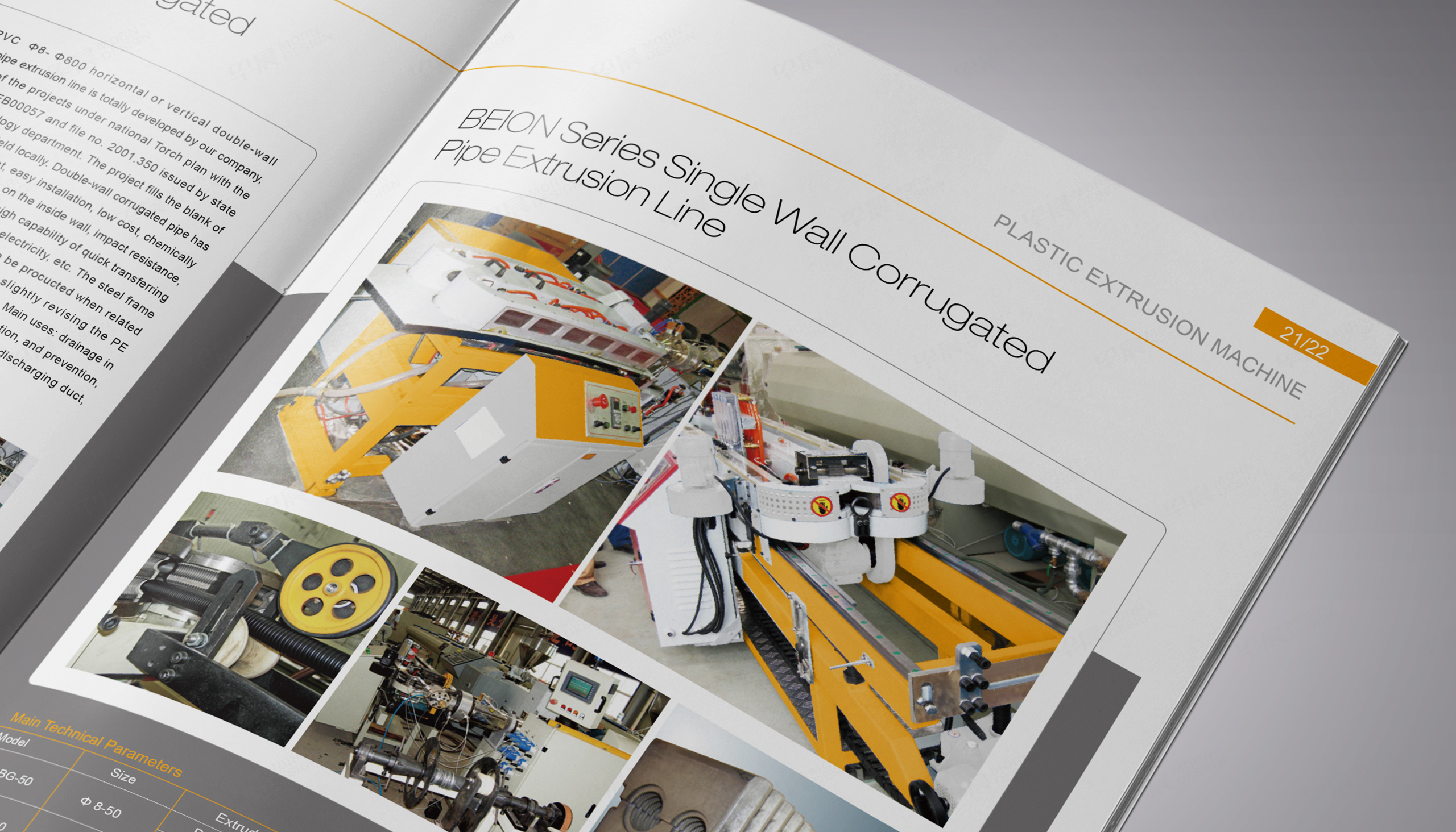 【貝昂機械樣本設計/宣傳冊設計】整個樣本設計簡潔無任何修飾。但是,在顏色的配色上面,貝昂強調了機器的色調和設計的主色調保持一致,在塑料擠出機行業采用了大膽的橙色,使整個畫冊看起來耳目一新,連歐洲客戶都認可該畫冊的設計風格。早晨設計是高端的張家港,江陰,太倉,昆山,常熟,蘇州,無錫,靖江,南通,如皋,靖江,海門,宜興樣本設計、畫冊設計、制作和印刷公司,提供策劃-文案-攝影-修圖-設計-印刷的整合宣傳冊設計制作服務,并提供免費樣本設計咨詢。