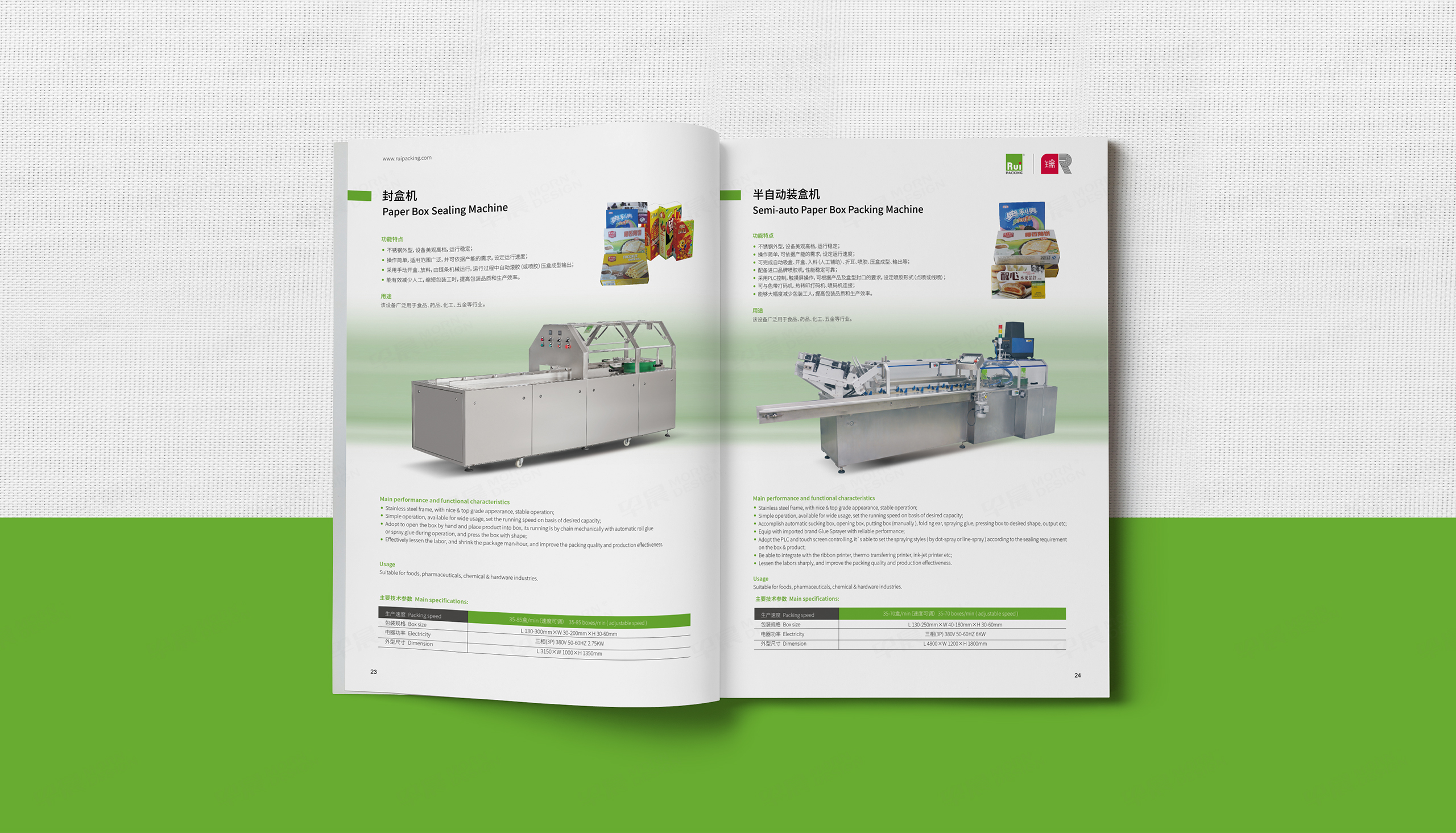 【瑞派克樣本設計/產品冊設計制作】瑞派克在薄膜袋包裝機械行業處于一梯隊企業。對于原先在上海設計的產品冊,感到已經不符合昆山新工廠的實際定位。早晨設計針對不銹鋼外觀的設備拍攝和后期上面做了細致的后期,在設計上面采用了企業標準色綠色,及一點玫紅色作為對比色。整體產品冊設計風格偏向清爽,包裝機械版面簡潔,易讀。早晨設計是高端的張家港,江陰,太倉,昆山,常熟,蘇州,無錫,靖江,南通,如皋,靖江,海門,宜興樣本設計、畫冊設計、制作和印刷公司,提供免費畫冊設計印刷咨詢。