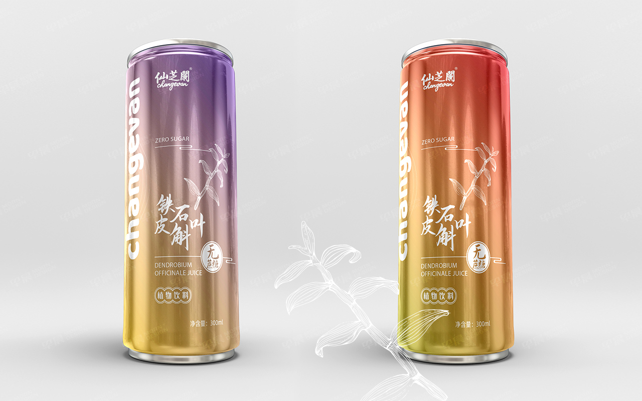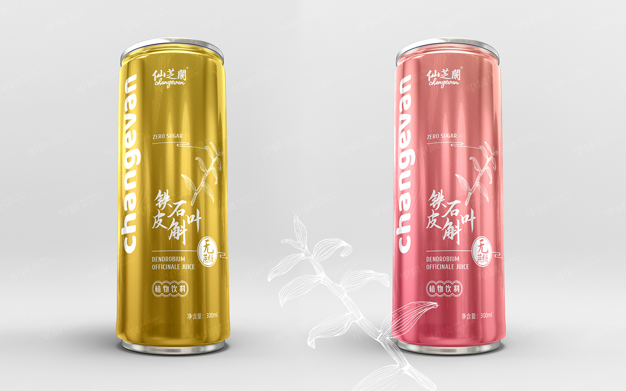 仙芝蘭鐵皮石斛飲料包裝設計,易拉罐包裝設計。包裝設計采用簡潔的中式風格設計,讓更年輕的人群更易喜歡和接受。
